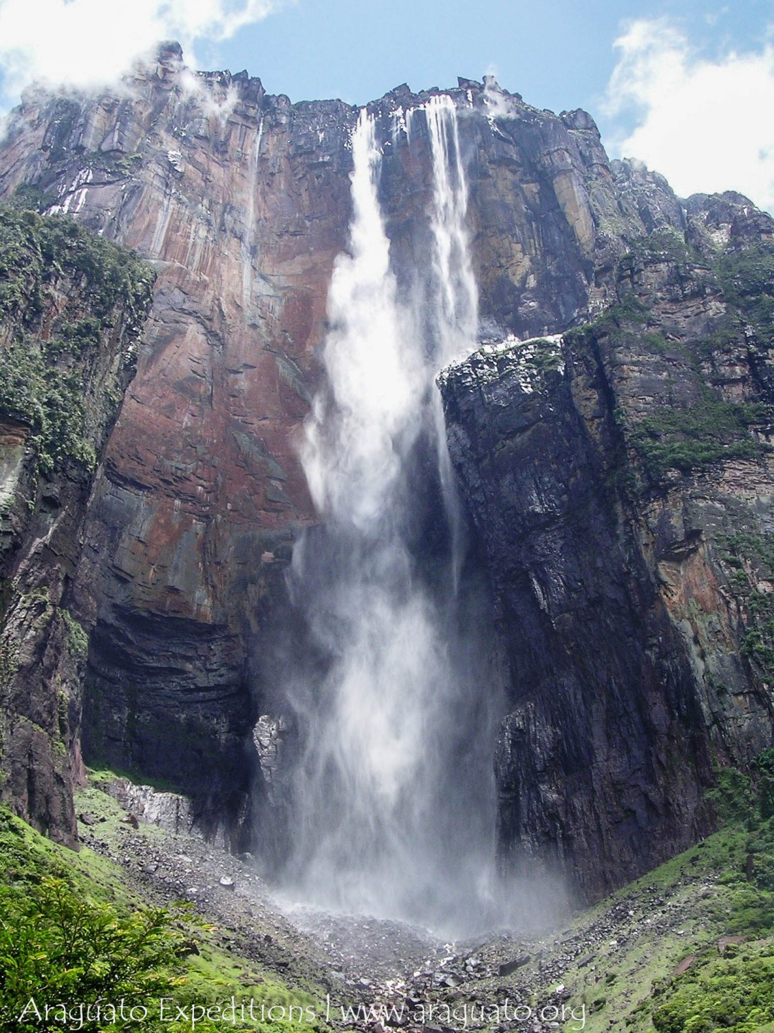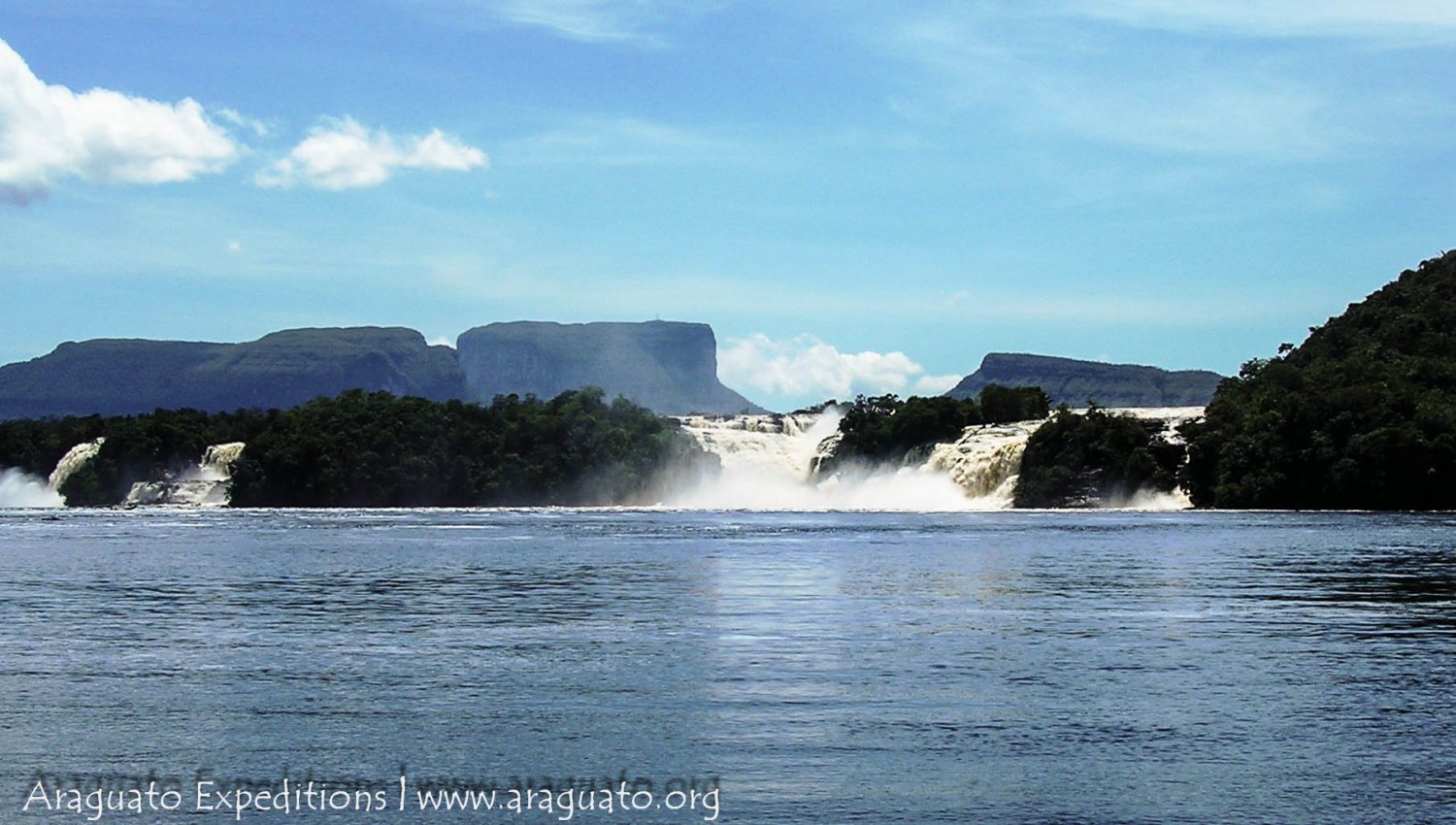 Día 4: Temprano en la mañana, después del desayuno haremos una caminata corta hasta el puerto de Ucaima, en el que tomaremos una canoa y nos embarcaremos en un viaje de aproximadamente 4 horas por los ríos Carrao y Churún hasta llegar a la Isla Ratón desde donde comenzaremos una caminata de selva de aproximadamente 1 hora y media, hasta llegar a la base del Salto. Durante el viaje en canoa estaremos permanentemente escoltados y rodeados por majestuosos tepuys e impatactantes vistas de rios y montañas. Al llegar a la base del salto, si el tiempo y el cauce del río lo permiten, tomaremos un inolvidable baño en la base del Salto Angel. Regreso a la Isla Ratón y regreso al campamento base desde el cual podremos contemplar una vez más el salto, esta vez desde una cómoda hamaca. Aquí pasaremos la noche. (D/A/C)