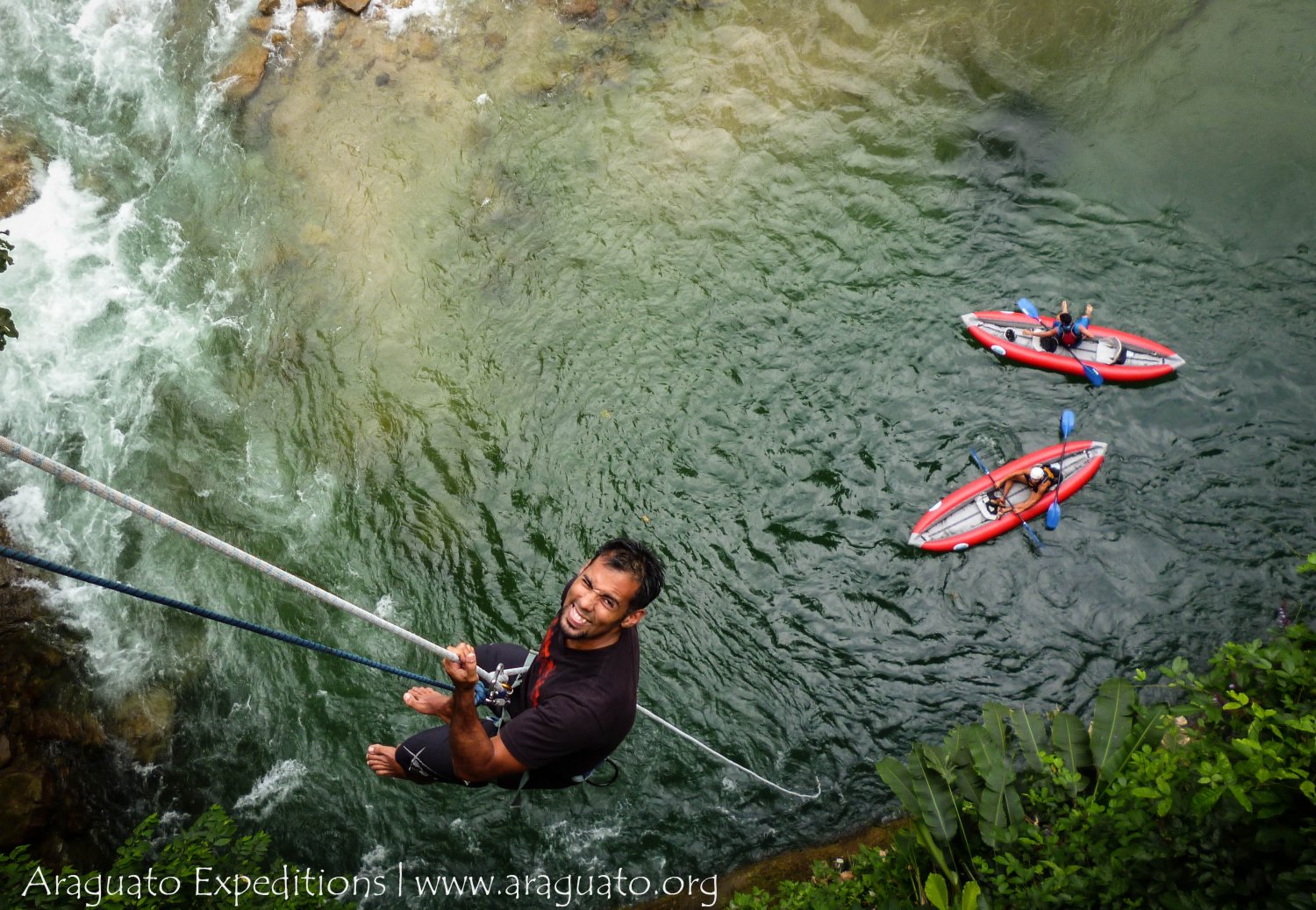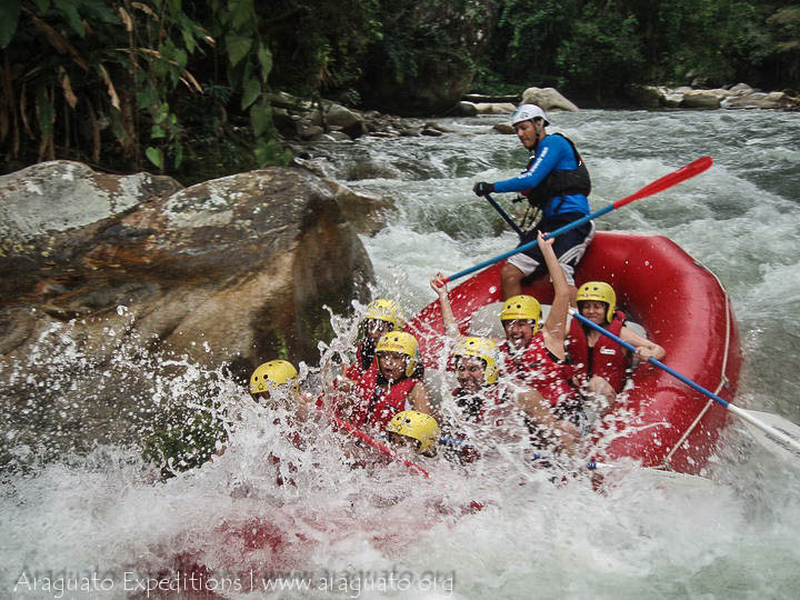 Día 1: Hoy llegaremos en horas del mediodía al campamento en el pueblo de La Acequia, una vez alojados, almorzaremos y tendremos una presentación de las actividades por parte de nuestro guía asignado. En la tarde haremos un emocionante paseo por las copas de los árboles en un divertido sistema de “tirolesa” o “canoping” y escalaremos en un muro de escalada artificial. Luego haremos rafting en el río Acequía, nuestro primer contacto será en un río relativamente tranquilo y con un trayecto más corto. Regresaremos al campamento para cenar. Durante la noche podrán disfrutar de una fría cerveza en el caney del campamento. (A/C)